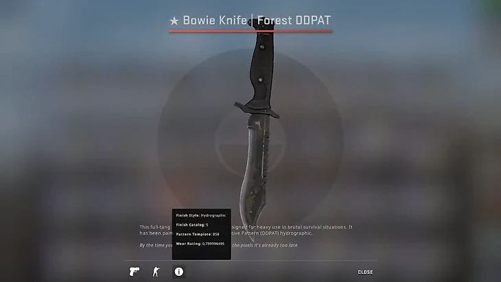 Некоторые ножи настолько поношены, что их скин выглядит, как дефолтная версия оружия без рисунка. Лучший пример – Пиксельный камуфляж «Лес», на котором остались лишь небольшие кусочки раскраски.