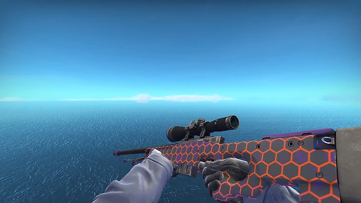 В чем заключался такой бешеный успех Азимова? Все просто – к 2014-му скины в CS:GO еще находились на самом раннем этапе развития, когда рисунки на пушках были максимально простыми, а любой яркий узор сразу же выделялся из общей кучи темных и непримечательных раскрасок. Например, тогда крутейшими скинами для AWP казались «Электрический улей» (который выглядел вот так)...