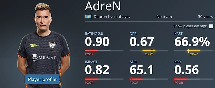 Возвращение Адрена в Virtus.pro (он уже играл за организацию в самом начале эры CS:GO) прошло максимально неудачно, поэтому мало кто удивился уходу Даурена из команды. Да, весь состав крайне слабо играл после перехода в VP, но AdreN провел худший период в карьере и показал ужасную индивидуальную статистику.