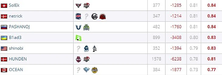 На этом моменте стоит задуматься. А в чем заключается его легендарность. По какому критерию оценивалась уникальность B1ad3'а? Когда кто-то просит назвать легендарных футболистов, мы называем таких людей, как Марадона и Роналдо, не только потому что они завоевали много трофеев, но и потому что они показывали выдающиеся личные умения. Как бы грустно это не звучало, но B1ad3 и по личному скиллу никогда не был на лидирующих позициях, наоборот он привлекал к себе внимание тем, что постоянно был на дне таблицы. Как итог, он закончил свою карьеру, находясь практически на последнем месте среди всех игроков, которые когда-либо играли в кс. Его K/D и Rating 1.0 составили -3408 и 0.83 соответственно.