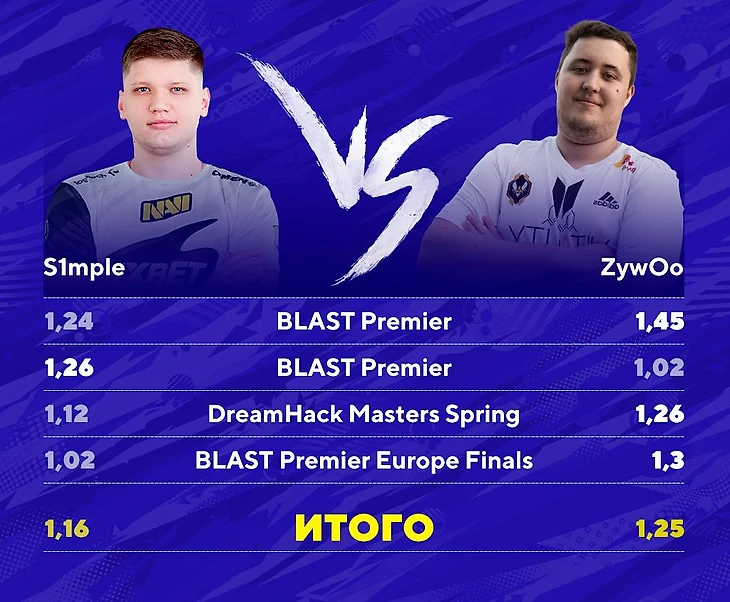 В 2020 году у Vitality и NAVI было 4 очных встречи, каждая из которых была крайне близка по счету. S1mple и ZywOo ни разу не заканчивали эти матчи с отрицательным рейтингом, но гораздо мощнее в таких принципиальных матчах смотрелся француз. В среднем его рейтинг против NAVI в 2020 году равен 1,25 против 1,16 у Симпла.