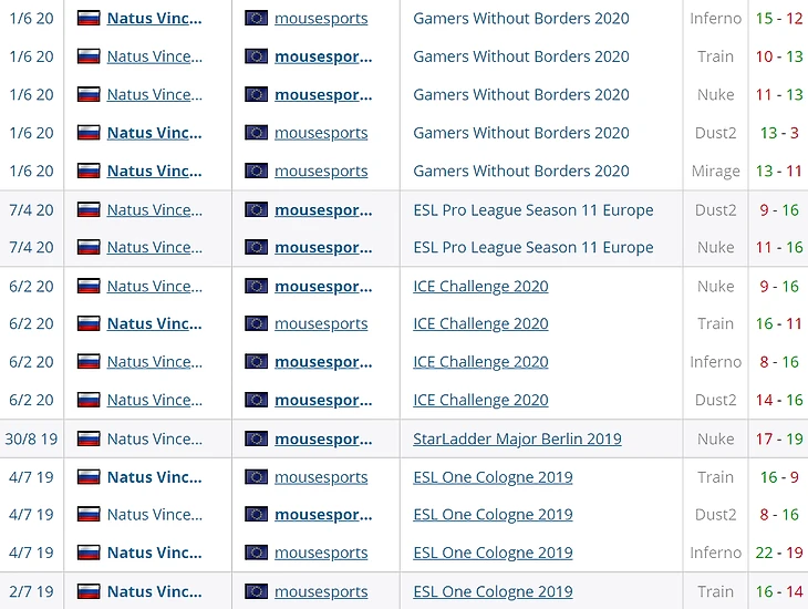 NAVI возвращаются с отпуска и сразу же встречаются с сильнейшим противником – Mousesports. В последних четырех матчах Natus Vincere смогли выиграть у «мышек» лишь 4 карты, в то время как команда Кэрригана забрала 8 карт. Сегодня стоит ждать очень напряженной и близкой игры.