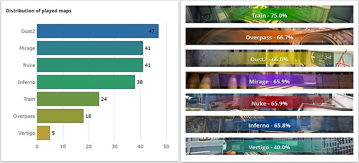 За этот сезон Team Spirit набрала винрейт в 65-66% на пяти локациях: Overpass, Dust2, Mirage, Nuke и Inferno. На Train команда вообще выиграла 75% матчей. Это сумасшедшая статистика, которой нет ни у NAVI, ни у Vitality, ни у BIG. Да, Spirit часто играла с более слабыми соперниками, но и против топов у команды уже набирается неплохой винрейт.