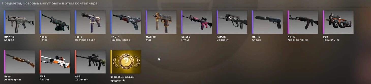 Кейс, в котором не такие красивые скины синего качества, но потрясающие раскраски для редкого оружия. С этим сундуком в игре появились лучшие скины для Бизона и UMP, а также один из лучших узоров для M4A1-S в соотношении цена/красота.