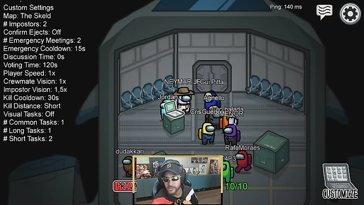 Позже Неймар с друзьями поиграли в Among Us – современный феномен игровой индустрии, чем-то похожий на «Мафию». Для этого футболист даже сменил имидж и надел солнцезащитные очки.
