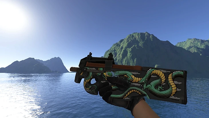 На этом скине нет сложной раскраски: по сути, это лишь обычный P90, на котором нарисован зеленый дракон с очень веселой ухмылкой на морде. Примерно с такой же улыбкой вы сможете рашить В с этим «петухом».