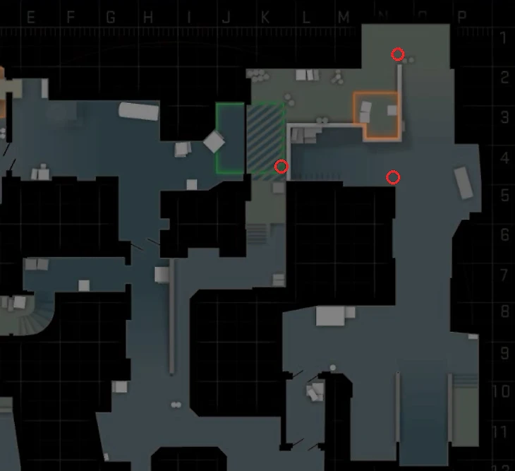 Позицию за синим ящиком на длине можно занять, только если команда получила ранний контроль над лонгом. В этой ситуации вы можете положить дым на двери, а затем встать в нычку, которую мало кто проверяет при повторном заходе на длину.