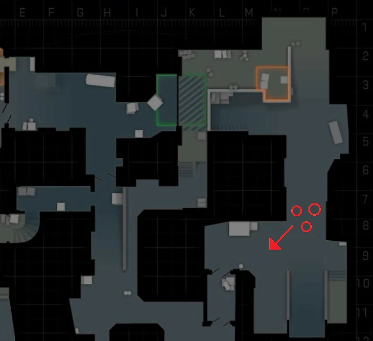 Эта позиция хороша для быстрого пика коробки и сдерживания пуша на средних таймингах. Даже если вас начинают давить террористы, вы можете откинуть под себя смок и быстро убежать на просвет или точку.