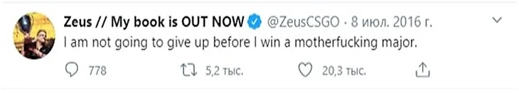 Твит Zeus, который он выложил, после того как принял решение продолжить карьеру