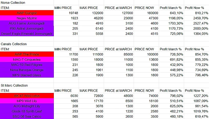 Зато цена восстановится в течение месяца, а крупная просадка цены на скины в будущем невозможна, так как они постоянно растут в цене. По итогу, инвестиция в старые скины – вариант с минимальным риском, но и с маленьким процентом прибыли.