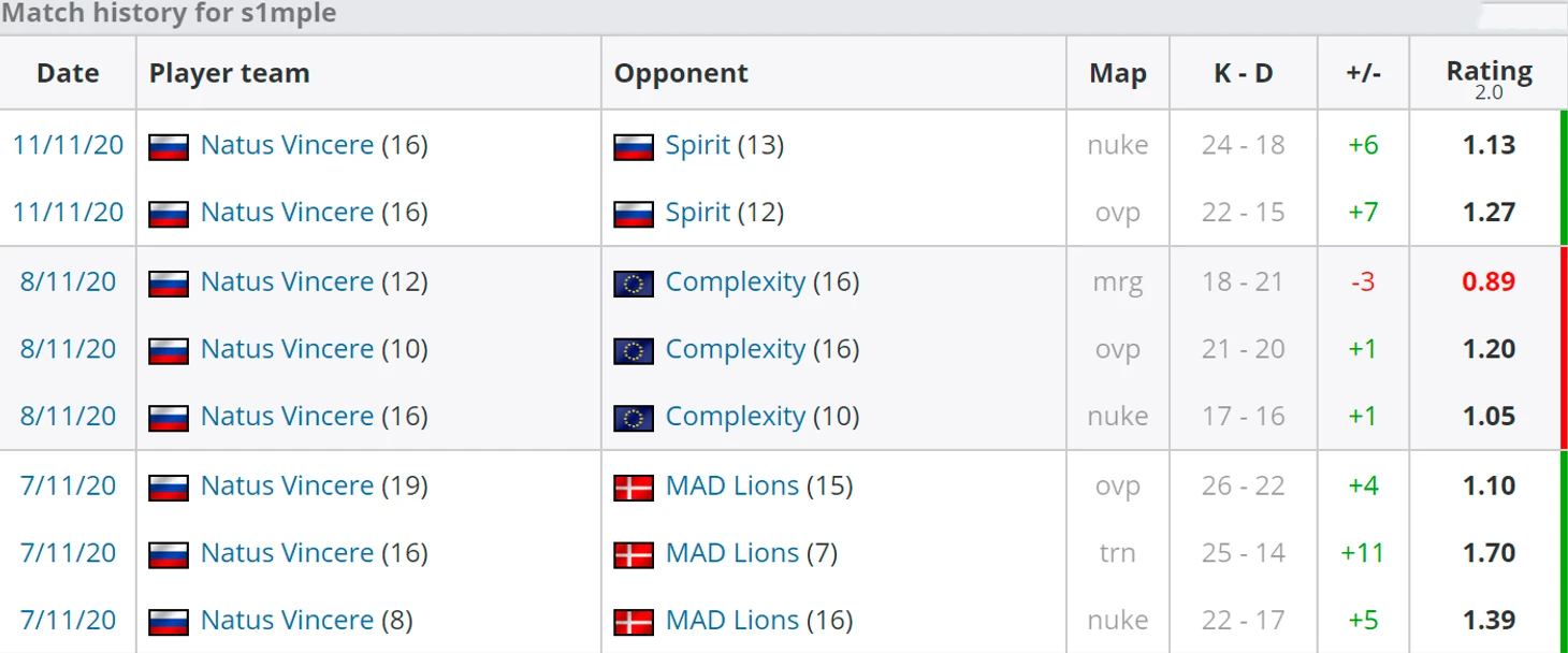 В ноябре NAVI сыграли три серии против MAD Lions, Complexity и Team Spirit. S1mple был самым стабильным игроком состава со средним рейтингом 1.20. Только в матче против Complexity его рейтинг упал ниже единицы. Для сравнения, в октябре снайпер не имел такой ровной статистики. В сериях против Virtus.pro и Gambit игрок и вовсе позволил себе трижды подряд сыграть с отрицательной полезностью.