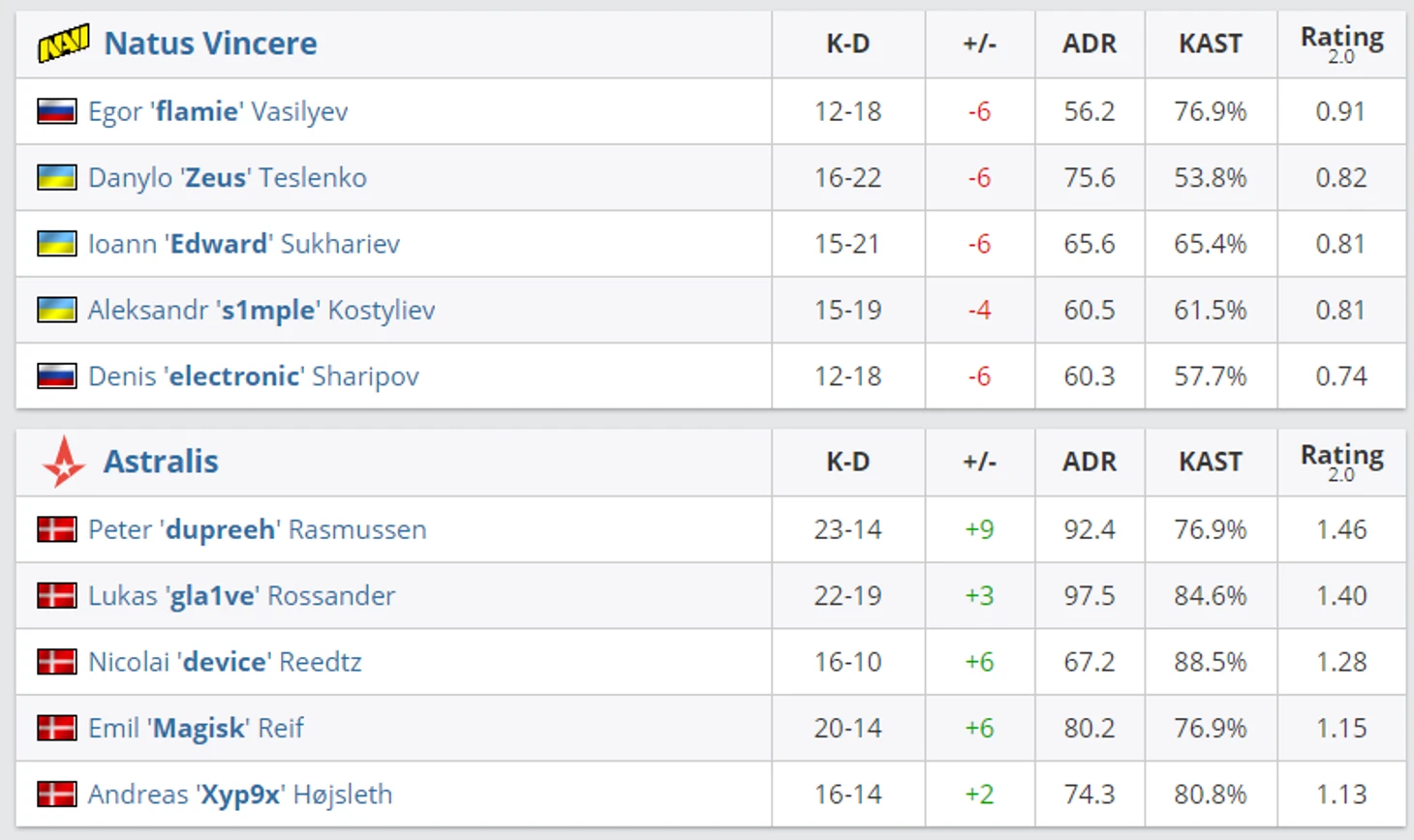 За последние два года S1mple сильно спрогрессировал против Astralis. В 2018 году он мог выдавать провальные карты и даже целые серии против датчан. Так было на StarSeries i-League Season 4 — стрельба не шла, и приходилось тащить тиммейтам. Внезапный провал именно в игре против Astralis у снайпера случился и на ESL One Cologne 2018, где игрок остался в тени тиммейтов.
