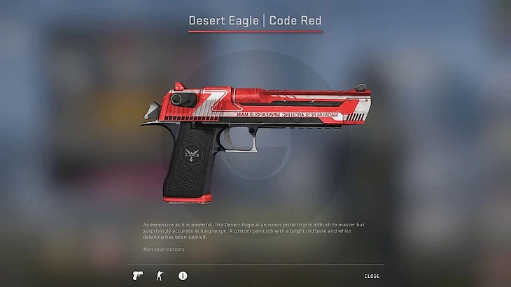 Дешевый вариант Desert Eagle: действительно дешевого красного Дигла не существует, поэтому в бюджетную подборку мы добавили «Код красный» в качестве «Закаленное в боях» за 1500 рублей. Этот скин с ухудшением качества только теряет яркость, поэтому даже в худшем варианте он выглядит красиво.