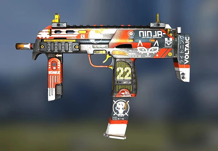 На MP7 есть два красных скина – «Кровавый спорт» и «Полная остановка», они стоят примерно одинаково – 300-500 рублей, но на «Полной остановке» больше красного цвета и он более темный, зато на «Спорте» красивые и яркие рисунки.