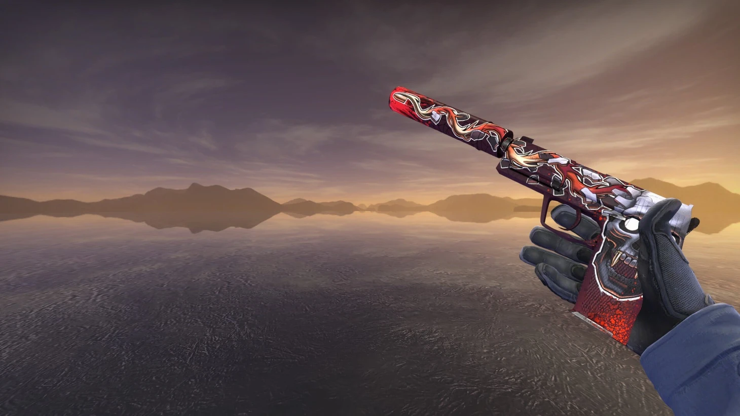 Дорогой вариант USP15: можно оставить «Неисправность», если вы хотите просто красный скин. Но лучшим вариантом будет USP «Подтвержденное убийство» с красивым рисунком черепа. От качества зависит яркость скина – царапины появляются начиная с качества «Немного поношенное». Стоимость – 7 тысяч рублей, идеальный вариант – 14 тысяч.
