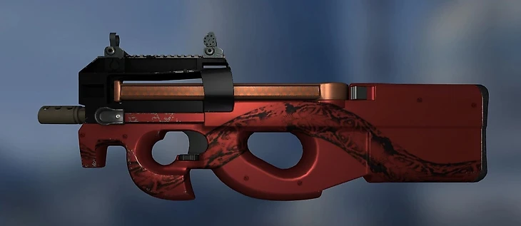 P250 «Покойник» – единственный красный скин. В зависимости от качества он тускнеет, поэтому можно брать как «После полевых» за 200 рублей, так и новенький за 500 рублей.