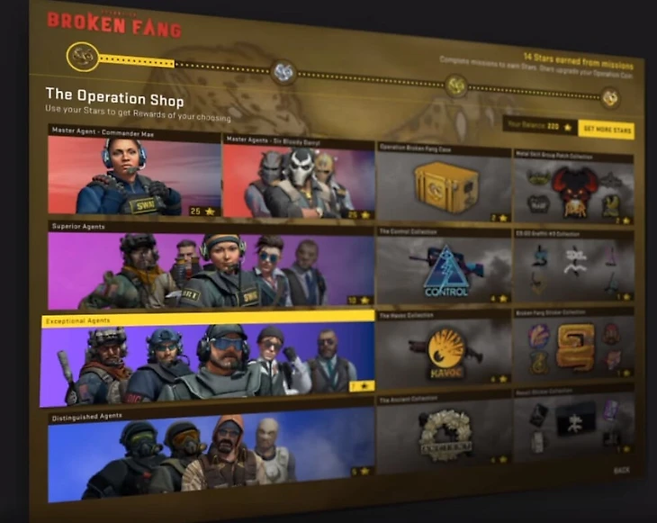 Изменился способ прохождения операции. В «Расколотой сети» вы получали случайный предмет из коллекции за определенное количество полученных звезд. Теперь вы сами сможете решать, какую коллекцию, оперативника, наклейку или нашивку покупать. Задания же почти не отличаются от старых – убить противников, выиграть раунд и т.п.