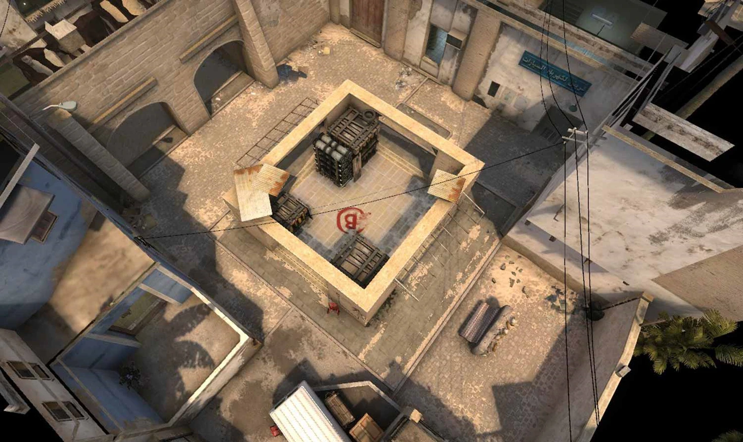 Mirage использует самую примитивную структуру карты, которая за 20 лет CS:GO уже значительно устарела и надоела игрокам. Две точки в разных частях карты и разделяющий их мид – это классика, но на Мираже она выполнена максимально примитивно.