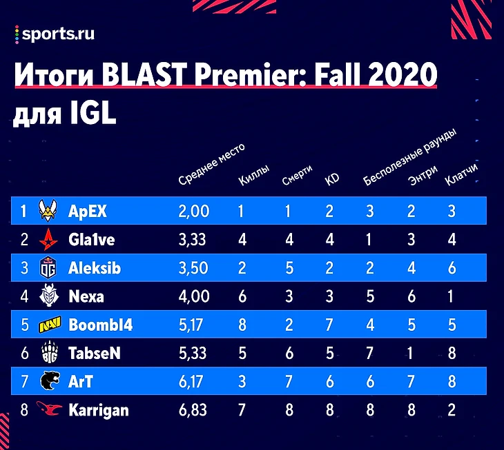 ★ Система игры с заменами работает: статистика Мисуты и Ниверы стала лучше, Шокс держит уровень, Бубзки хорошо проявил себя. Но Бубзки и Бит из Na’Vi не вошли в рейтинг, поскольку отыграли только 3 карты за чемпионат. Если бы их показатели были включены, то Bubzkji стал бы 8-м на своей позиции и 12-м в общей таблице, а B1T – 16-м и 29-м соответственно.