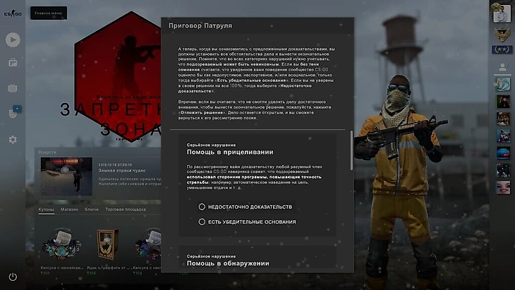 Как работает? Игроку показывается запись матча, в котором кто-то получил много репортов за читерство. После просмотра 8-9 раундов игрок должен сделать вердикт – нарушал ли правила подозреваемый или нет. Такая же запись показывается еще нескольким «Патрульным», если большинство указало подозреваемого читером, то он получает блокировку.