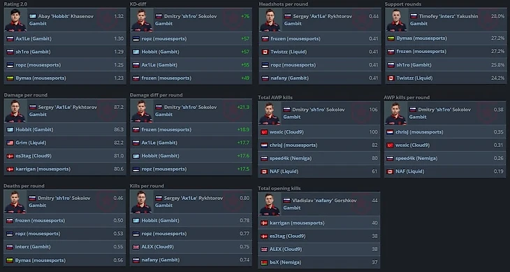 На первой неделе декабря во всех категориях HLTV на первых местах были игроки Gambit.