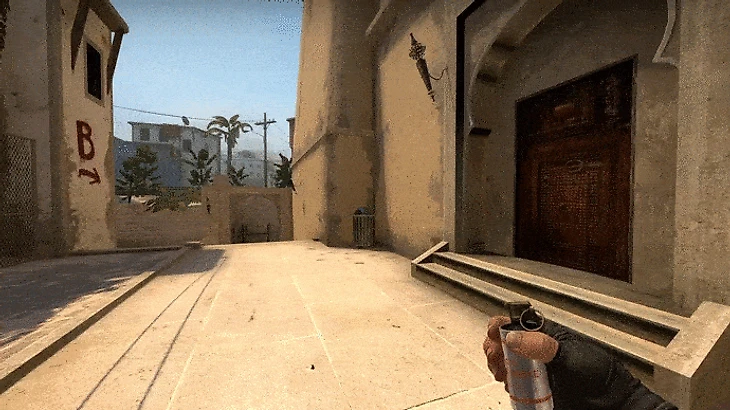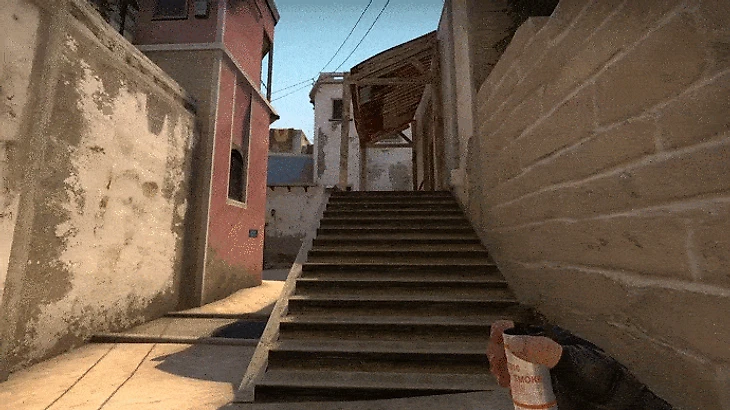 Для того, чтобы его кинуть достаточно упереться в угол, а затем нацелиться в одну из темных точек на текстуре стены, как показано на видео. После чего одновременно нажать JumpThrow+W. Только в таком случае этот смок полетит правильно. Попробуйте и этот смок станет одним из ваших самых любимых, ведь он не только быстро, но и красиво прилетает на заданную позицию.
