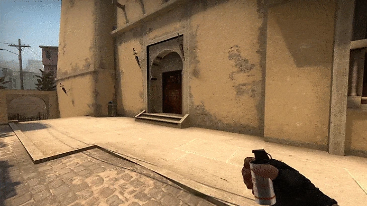 Этот смок - разновидность предыдущего смока, но без щели слева. Правда есть небольшая справа, в которую часто любят залезать КТ, но для этого можно кинуть в эту зону коктейль молотова. К тому же кидается он намного быстрее. Не нужно забираться на пристройку. А так же можно использовать его для фейка, в связке с быстрым смоком на головы (#2), если вы, например, играете вдвоем с другом.