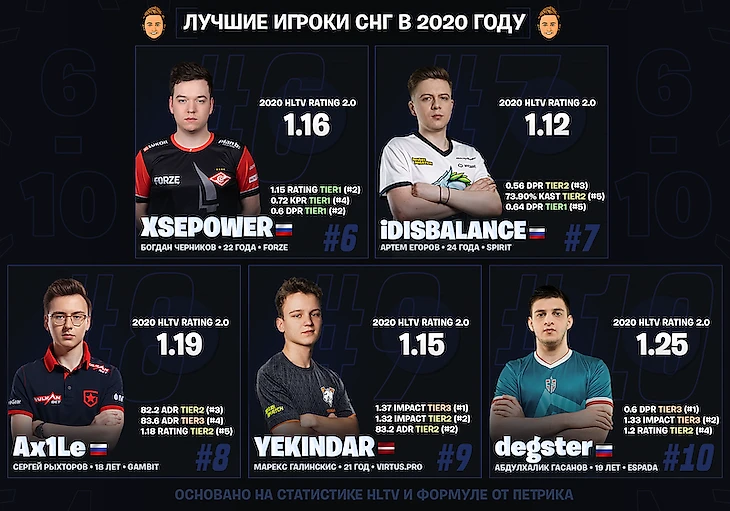 Degster стал одним из открытий 2020 года не только в СНГ, но и для мирового комьюнити. Его результативность в составе Espada в декабре даже привлекла внимание журналистов HLTV, которые написали про него материал, назвав одним из самых перспективных игроков Европы. Распад Эспады не стал для Абдула проблемой – он тут же был приглашен в Spirit и уже получает первый опыт топовых турниров в новой команде. Как раз из-за полного отсутствия Espada на турнирах tier1-уровня шансов подняться в этом рейтинге еще выше у Абдула не было.