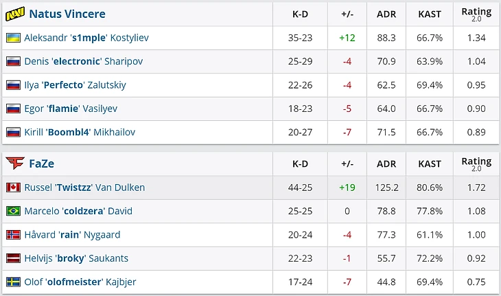 Раунд при счете 14:14 – пиковая точка всего матча. NAVI получили комфортное преимущество с поставленной бомбой, однако Faze Clan мгновенно отняла его и перевела раунд в ситуацию 1 в 1. Flamie и Twistzz разыграли друг с другом матчпойнт, а два обидных промаха с AWP от канадца не позволили ему окончательно стать героем матча. Флейми выиграл клатч, а NAVI вышли на счет 15:14.