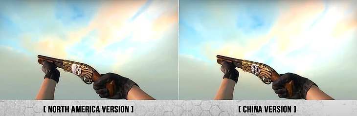 Китайская CS:GO грамотно обходит все запрещенные для показа в стране изображения. На картах убрана вся символика, которая указывает на определенную национальность, а жестковатые скины с черепами переделаны под гораздо более нейтральные рисунки.
