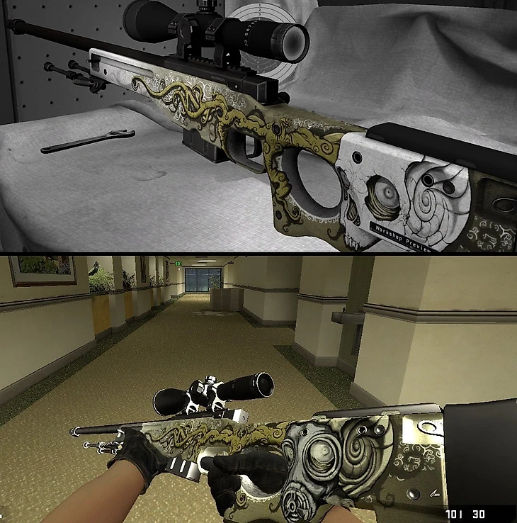 На AWP «Бог червей» череп вновь заменили на противогаз. Можно даже поспорить, какая версия выглядит круче.