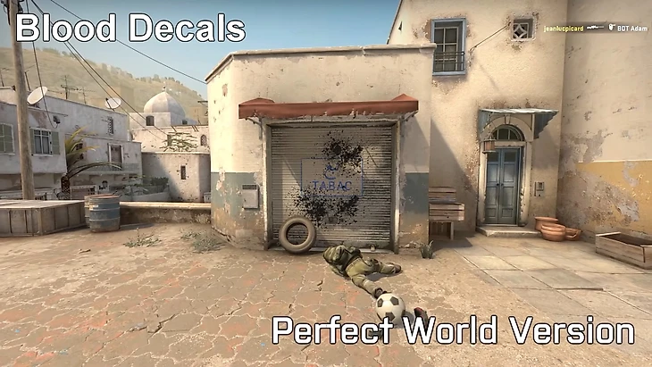 В версии CS:GO для Perfect World кровь также остается на поверхностях, однако цвет у нее абсолютно другой – темно-зеленый. Это знаменитый прием, который часто используется в региональных версиях шутеров.