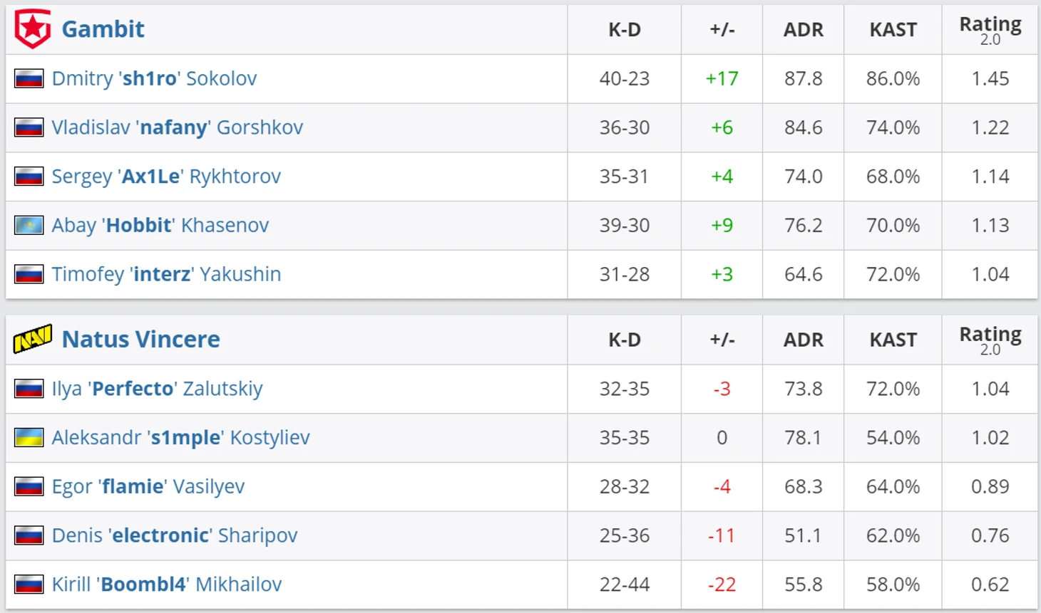 На обеих картах главной звездой был Дмитрий «Sh1ro» Соколов – снайпер Gambit. Его статистика против NAVI прекрасна.