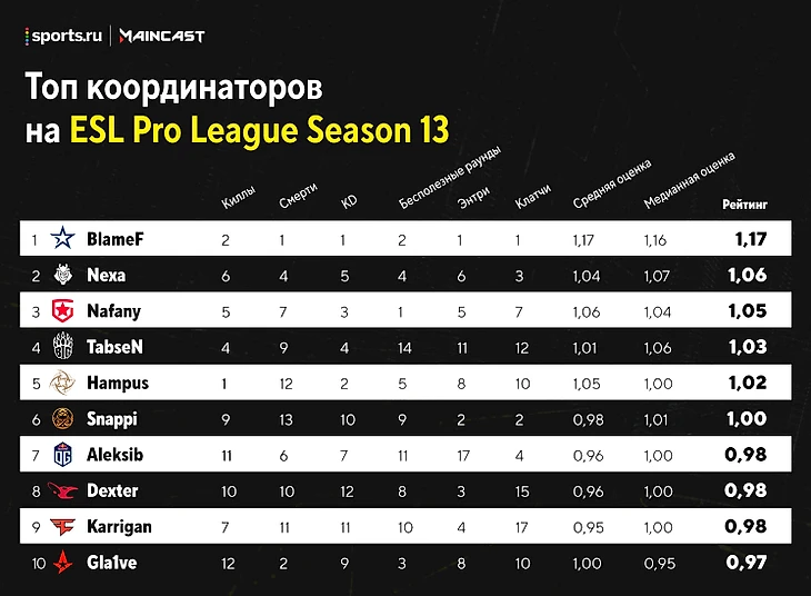 Важное замечание: в рейтинге координаторов не упоминаются капитаны-снайперы, поскольку у них другой игровой стиль. Они оцениваются в категории снайперов.