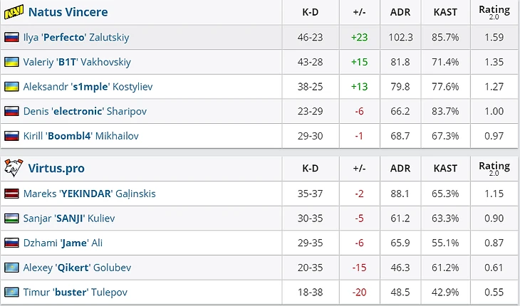 Но ключевой раунд, показывающий всю сегодняшнюю игру Virtus.pro случился при счете 7:13. VP начали мини-камбэк, но Перфекто с TEC9 выиграл клатч – сначала сделал два минуса при ситуации 2 в 5, а завершил момент, выиграв 1 в 3. Этот раунд по сути закрыл матч – дальше NAVI легко доехали до победы на эмоциях.