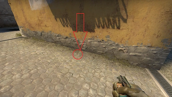Целимся в правый угол крыши, делаем пару шагов и кидаем гранату в прыжке. В это время ваш тиммейт сможет пикнуть ослепленных соперников через окно.