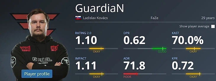 Но дело было совсем не в адаптации к игровому стилю. GuardiaN совсем перестал попадать, а его суммарный рейтинг за первые четыре месяца в NAVI и вовсе составил 0,96 – меньше даже чем у многих капитанов. Тогда Ковачу было уже 27 лет, что очень много для любого игрока в CS:GO, а тем более для снайпера. Его спад связывали с возрастом, но, пожалуй, истинная причина крылась в семье, о чем GuardiaN говорил еще перед переходом в FaZe: