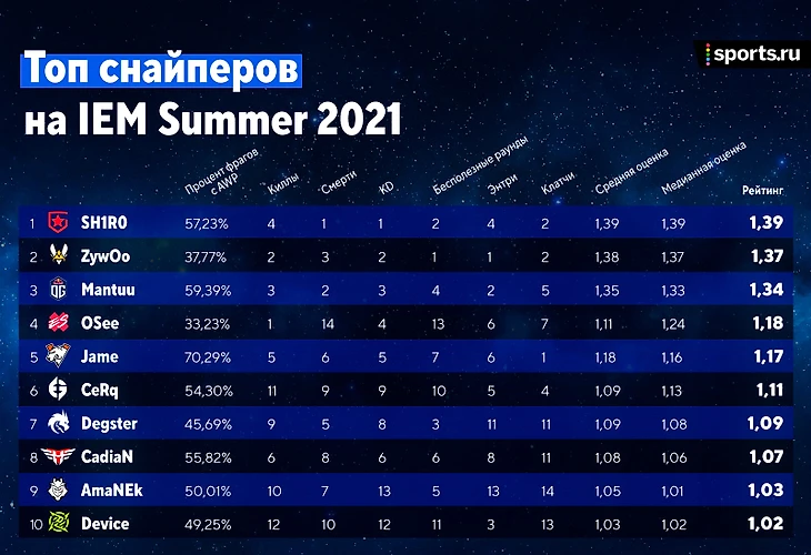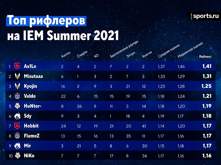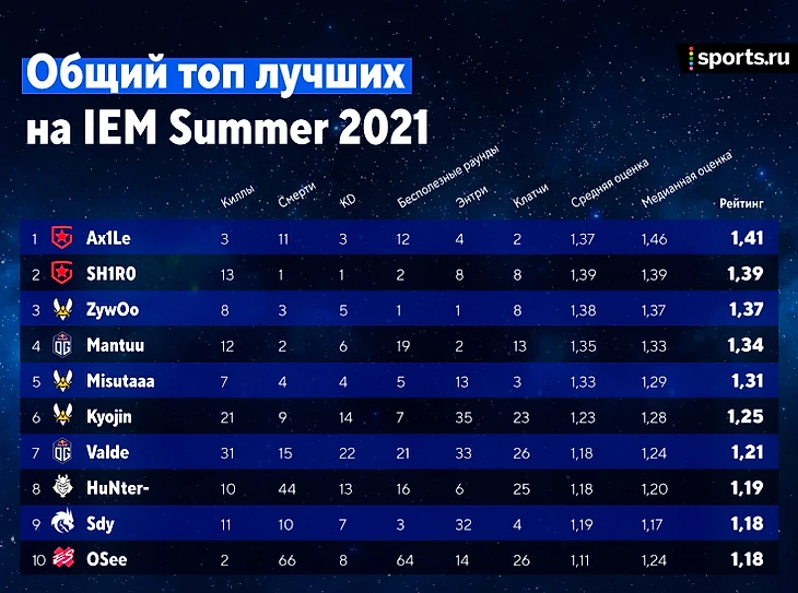 Рейтинг Sports.ru по итогам IEM Summer 2021: Ax1Le – MVP, Sh1r0 – лучший снайпер, ZywOo – в топ-3