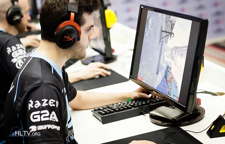 А вот так сетап выглядит в динамике. Игрок Gambit Интерз держит клавиатуру четко перпендикулярно столу.