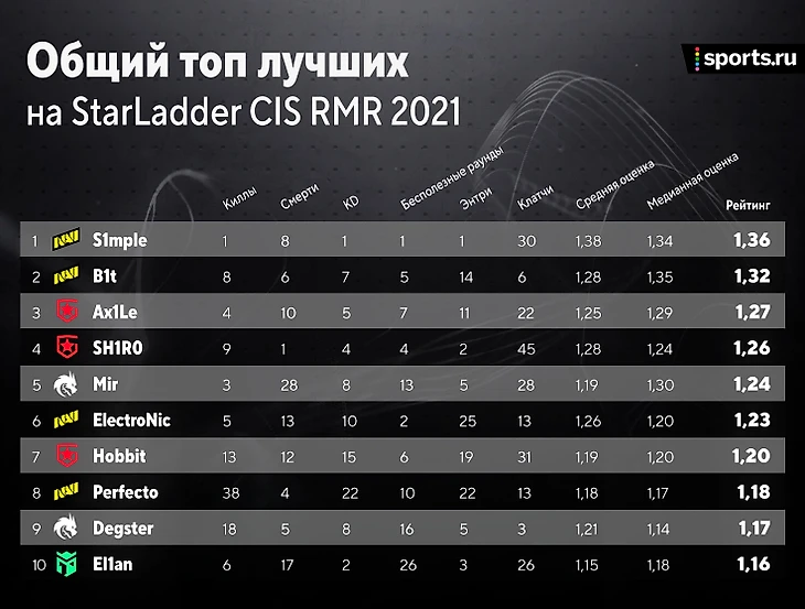 Рейтинг Sports.ru по итогам StarLadder RMR: S1mple – MVP турнира, B1t – лучший рифлер