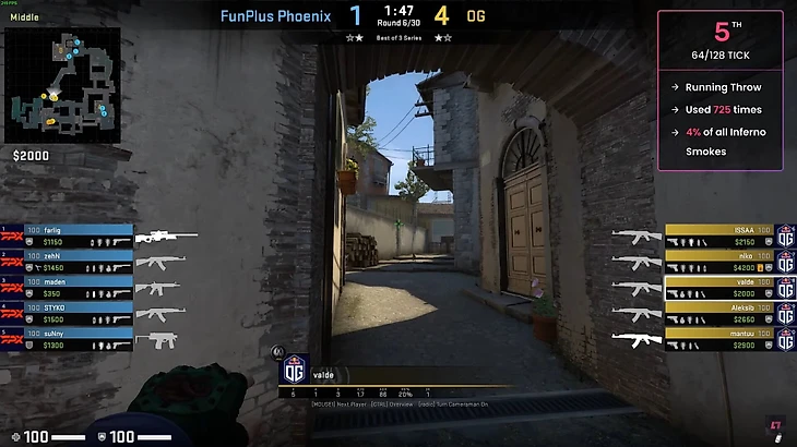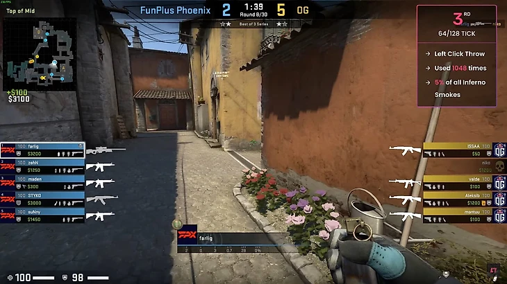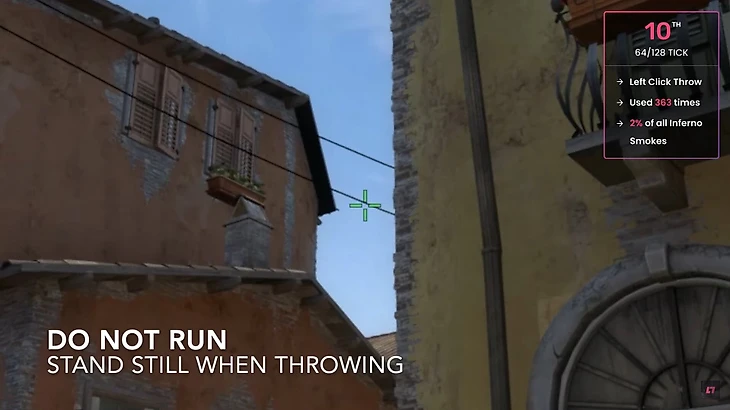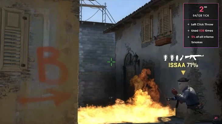 Сервис статистики Leetify проанализировал несколько тысяч раундов на про-сцене и нашел самые популярные смоки на Inferno на про-сцене. Здесь нет сложных раскидок, оказывается, про-игроки обожают самые легкие смоки.