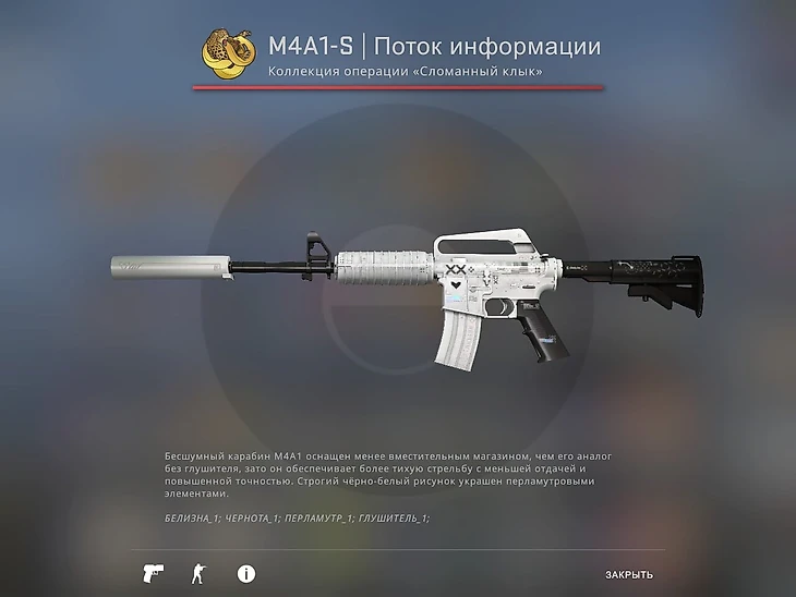 Симпл часто играет с красивым белым диглом «Поток Информации» за 10 тысяч рублей. Качество скина – «прямо с завода».