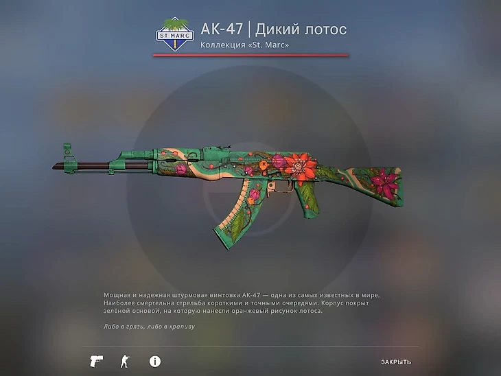 Основной AK-47 Симпла – Дикий Лотос в качестве «Немного поношенное», очень редкий скин из коллекции с прошлой операции. Сейчас такие не продаются на торговой площадке, а последний был продан еще в декабре 2020 за 140 тысяч рублей. Рекомендуемая цена на CS.Money – почти 400 тысяч рублей, а единственный доступный скин в таком качестве продается за 850 тысяч.