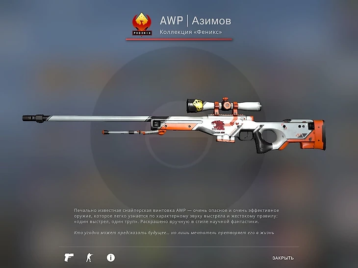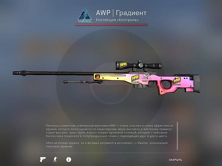 Кроме Градиента есть Азимов «после полевых испытаний» с голографической iBUYPOWER с Катовице 2014 и металлической короной. Эти наклейки добавляют к стоимости AWP (7500 рублей) как минимум 150 тысяч рублей.