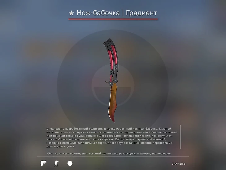 У Симпла два дорогих ножа, оба в качестве «прямо с завода»: Стилет Кровавая паутина за 150 тысяч рублей и бабочка Градиент за 200 тысяч рублей. Они очень редкие, сейчас они даже не продаются на торговой площадке.