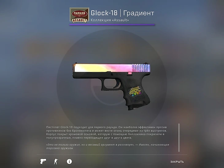 Glock-18 Градиент «прямо с завода», цена которого больше ста тысяч – это самый дорогой пистолет в инвентаре Симпла.