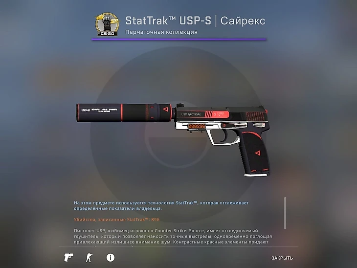 Из дешевых скинов у Симпла есть СтатТрек версия USP-S Сайрекс. Сейчас такой пистолет стоит чуть меньше тысячи рублей.