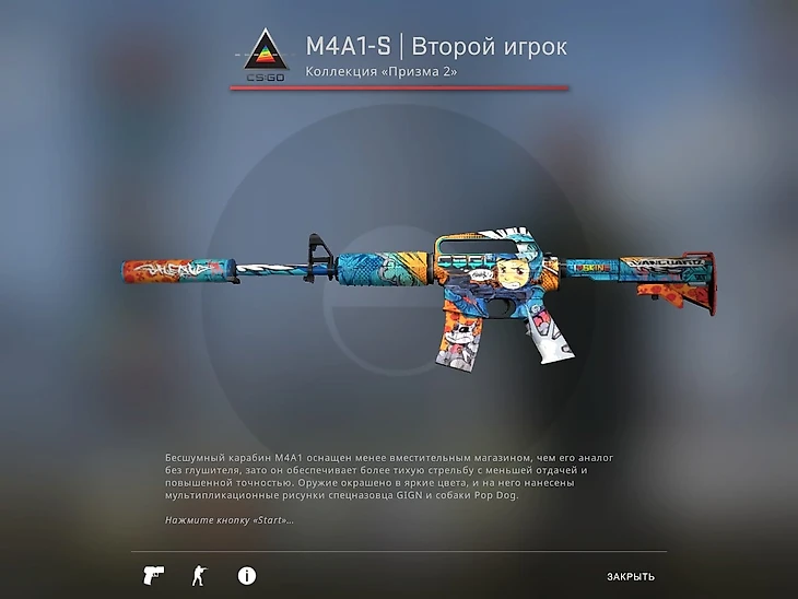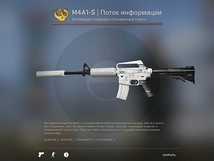 Несмотря на то, что Перфекто часто играет с классической Эмкой, у него есть еще несколько красивых скинов на версию с глушителем: Поток информации за 5500 рублей и Второй игрок за 2 тысячи рублей. Обе в качестве «немного поношенное». Вторая эмка – самый любимый скин Перфекто в игре. Хоть он и играл с ней мало, но сразу же влюбился в нее: