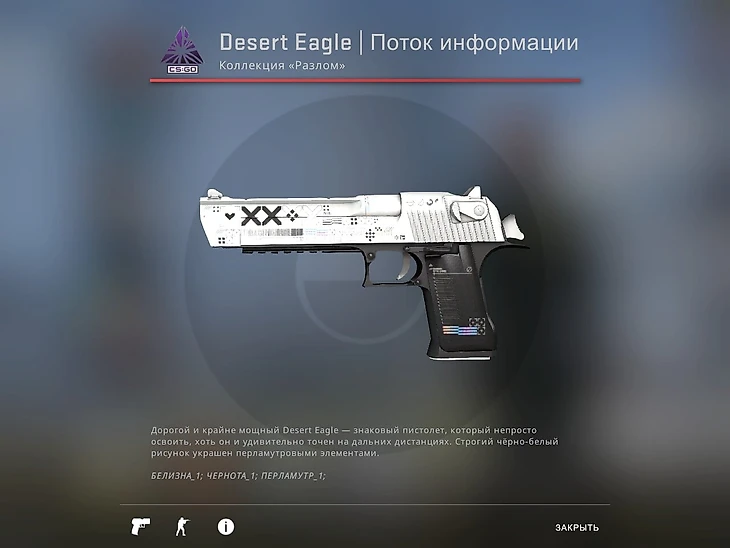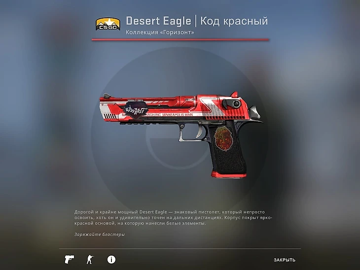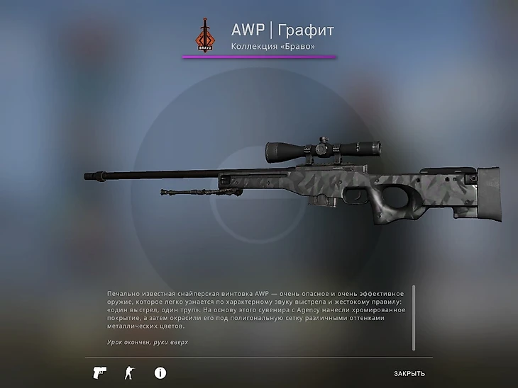 Почти все предметы в этой категории – ножи и перчатки, есть только 2 исключения: Дигл Поток информации за 10500 рублей и AWP Графит за 13 тысяч рублей. Оба в качестве «прямо с завода».
