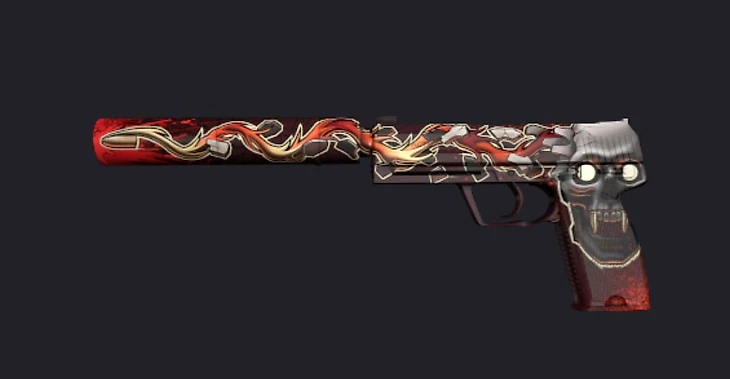 С этим скином все очевидно: на нем изображено неизвестное животное с розовыми когтями и длинным зеленым языком. Даже не вглядываясь в принт, скин выглядит агрессивно. AWP стоит от 1,6 тысячи до 7,2 тысячи, а эмка – от 600 рублей до 5 тысяч.